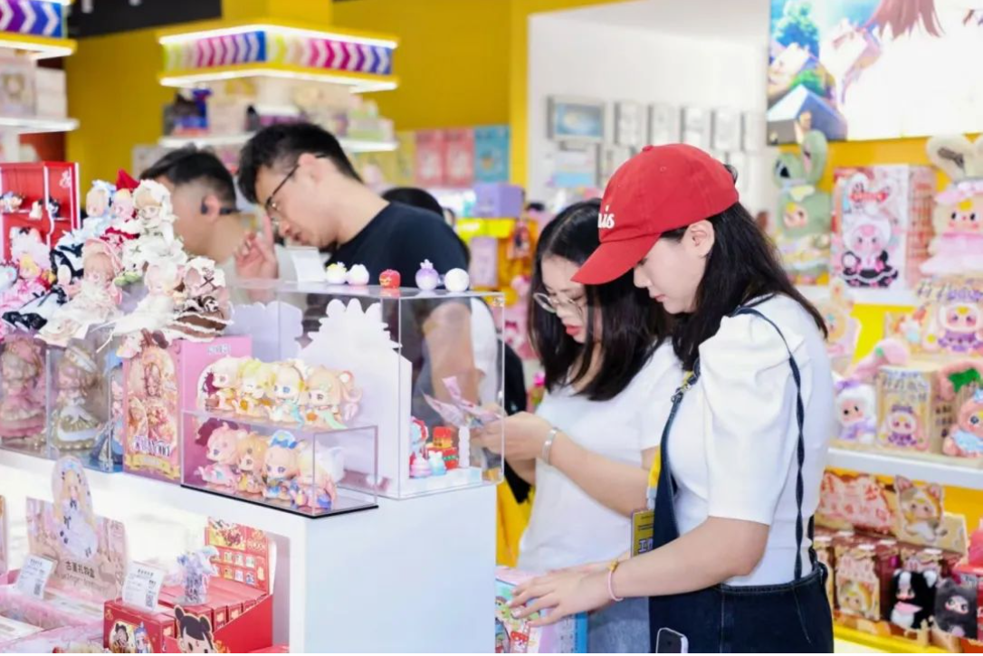 中国潮玩之都场馆里,"盗墓笔记"毛绒玩具展架已补货三次。国漫选品中心负责人赵玉贵清点着销售清单:"霉霉双生秘境系列首日断货,四天卖出20万。"这个漫博会开幕当日启用的新阵地,汇集2000余款产品迎接2.5万人次客流。隔壁燎潮库潮玩店收银台前,韩国代购正打包价值4000元的限量手办,店长龚萍翻看销售报表:"日均破2万业绩,采购商名片收了半盒。"