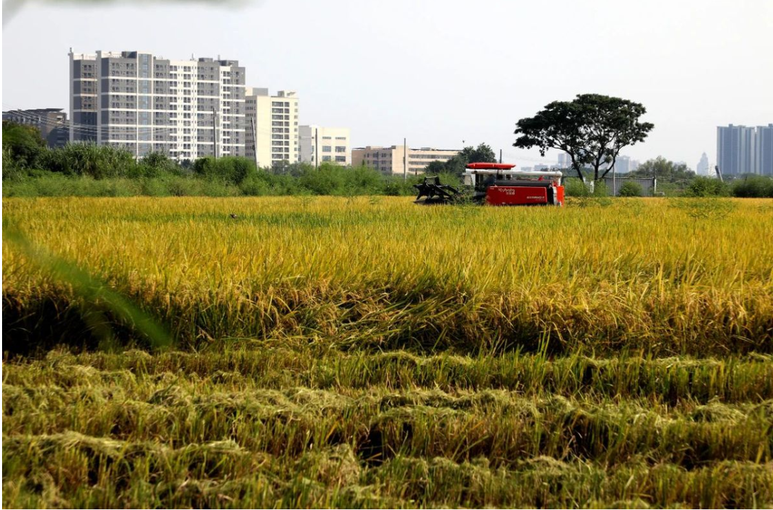 近日,道滘镇马洲尾耕地恢复项目传来喜讯,300余亩黄金稻田完成收割,沉甸甸的稻穗化作金灿灿的谷粒,经三天紧张作业,数台收割机穿梭其间,奏响丰收交响曲。此次收割的首批40亩稻田属于项目二期工程,原为地势低洼的鱼塘,经剥离塘泥、回填客土等生态化改造后,成功转型为高产农田。