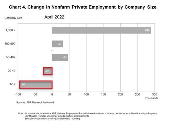 根据ADP的数据,这是连续第24个月就业增长,但小企业的就业岗位大幅减少。尤其随着劳动力市场趋紧,员工人数不足50人的小公司在成本上升的情况下面临工资竞争问题。