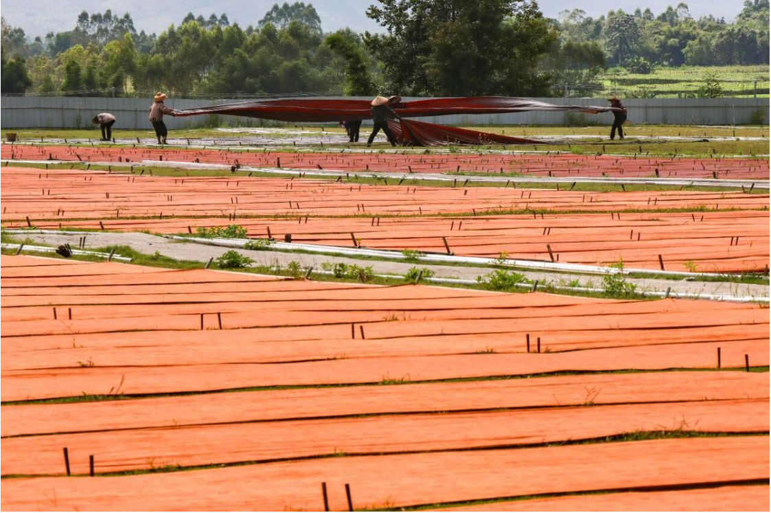 工作队通过多次实地走访调研,最终决定利用本地资源发展香云纱这一非遗产业。2023年3月,翁源县香云雅韵薯莨加工有限公司正式成立,总投资超过1500万元,建成7个生产车间及200亩标准化晒布场。此举不仅盘活了闲置资源,还为乡村产业振兴树立了典范。