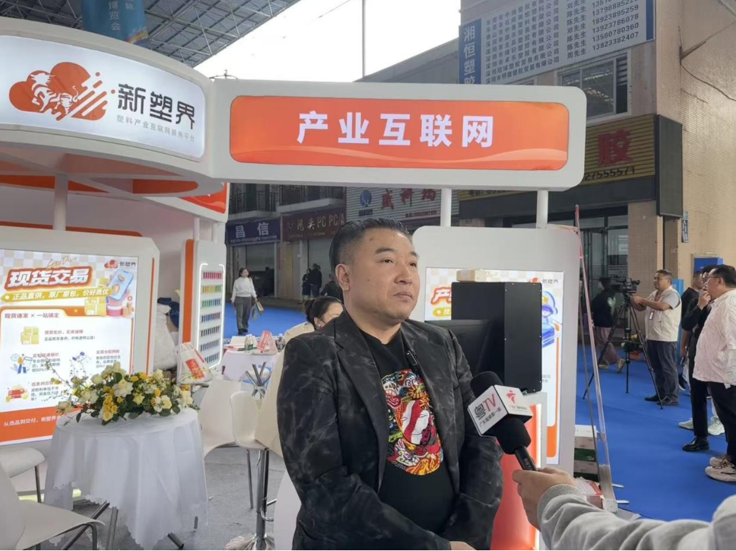 新塑界平台投资人、正显集团总裁张盛锐在展会现场接受采访。