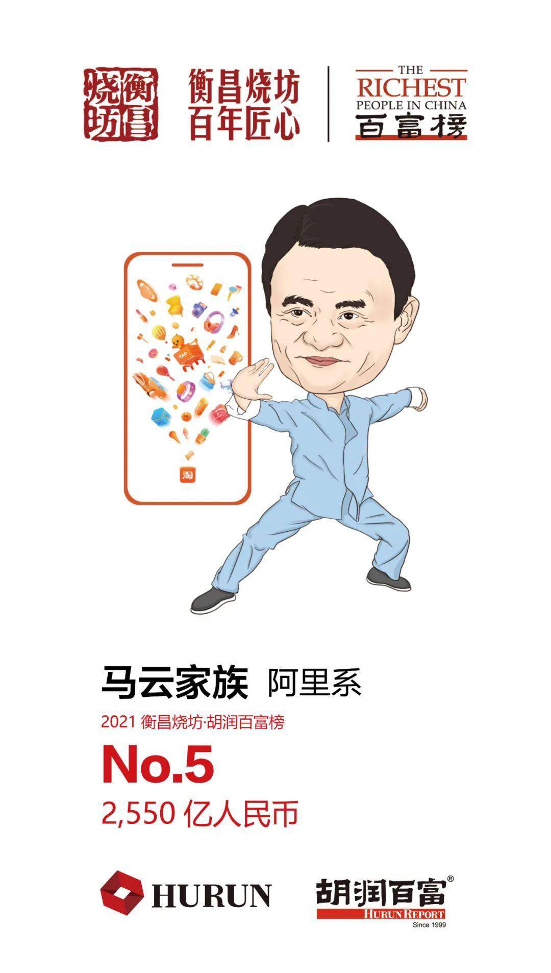 去年的首富马云财富下降 1,450 亿元,即 36%,以 2,550 亿元位列第五。马云旗下的港股上市公司阿里巴巴自去年 10 月底至今股价跌幅接近 60%,目前市值不到 2.5 万亿元。而由他创办的曾经全球最大独角兽公司蚂蚁集团于去年 11 月上市被叫停后,目前正处于整改过程中。阿里巴巴和蚂蚁集团分别位列今年胡润世界 500 强第九名和第 83 名。阿里系今年共有 26 位股东上榜。