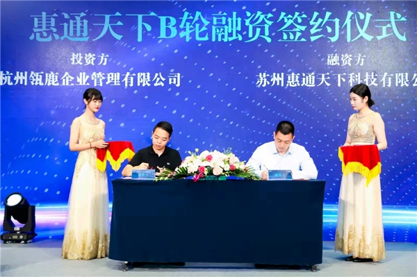 (杭州瓴鹿企业管理有限公司与苏州惠通天下科技有限公司签订投资协议 左:韩虎 右:孔明军)