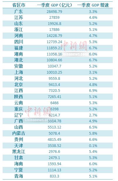 从GDP总量来看,广东、江苏、山东前三强的格局没有变化。广东依然是GDP总量的“老大”,一季度GDP超过2.8万亿元。