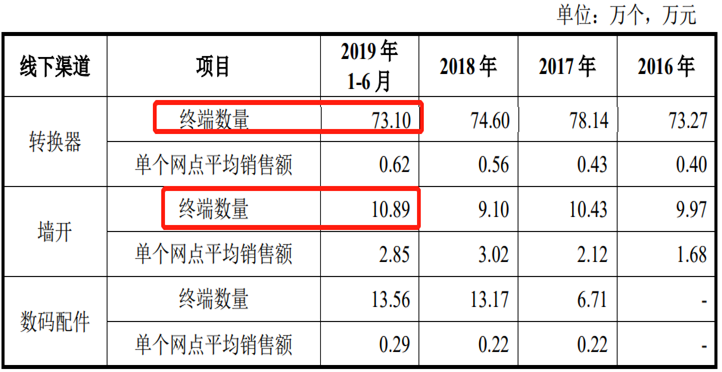 公牛招股书显示,截至2019年6月末,公司累计有近100万个(目前已超过11万个)终端网点,这其中转化器网点数量最多,达到73万个。