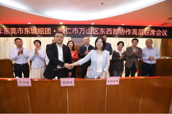 4月26日,2023年东莞市东城组团·铜仁市万山区东西部协作高层联席会议在东城召开,铜仁市万山区党政代表团,东城街道、石碣镇、洪梅镇、水乡特色发展经济管委会等镇街(园区)领导参与会议,进一步贯彻落实粤黔两省、莞铜两市关于新一轮东西部协作部署要求,共商合作、共谋发展,巩固推动两地在新发展阶段的合作,开启东西部协作崭新局面。