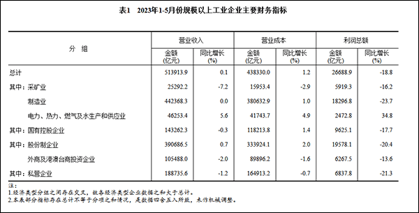 5月份,规模以上工业企业实现利润总额6358.1亿元,同比下降12.6%。