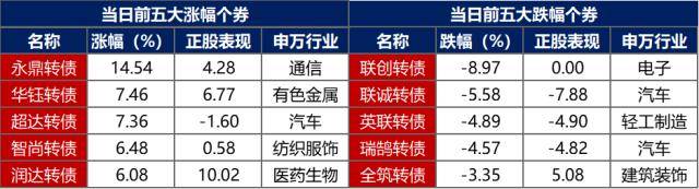 【转债市场指数小幅收跌】7月5日,转债市场主要指数震荡走弱,中证转债、上证转债、深证转债分别下跌0.16%、0.14%、0.19%。当日转债市场成交额777.58亿元,较前一交易日增加1.37亿元。当日转债市场个券多数下跌,493只个券中173只上涨,316只下跌,4只持平。当日,永鼎转债上涨14.54%,大幅领先市场,华钰转债、超达转债、智尚转债、润达转债涨超5%,且个券成交异常活跃;当日联创转债、联诚转债跌逾5%,英联转债、瑞鹄转债跌逾4%,全筑转债、贝斯转债跌逾3%,调整较为明显。
