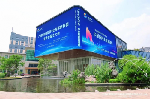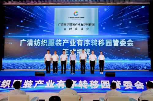 7月29日,清远市广清纺织服装产业有序转移园管委会成立大会在核心区广州北·中大时尚科技城举行。广清纺织服装产业有序转移园将力争在未来5—10年内,打造成为“万亩千亿级”制造业大平台、中国快时尚智造基地。清远市委书记、市人大常委会主任殷昭举,清远市委副书记、市长温文星,省人大财经委副主任委员余立钢,省工信厅二级巡视员谌志群,中国纺织工程学会理事长伏广伟,中国纺织建设规划院副院长马志辉,中国棉纺织行业协会副会长兼秘书长李杰,粤科金融集团党委副书记邓斌,粤财投资控股党委委员、粤财中垠基金管理公司董事长胡鲜、忠华集团董事局主席胡忠华等,500多名政府领导、以及相关企业、院校、协会、商会、金融机构负责人出席大会。