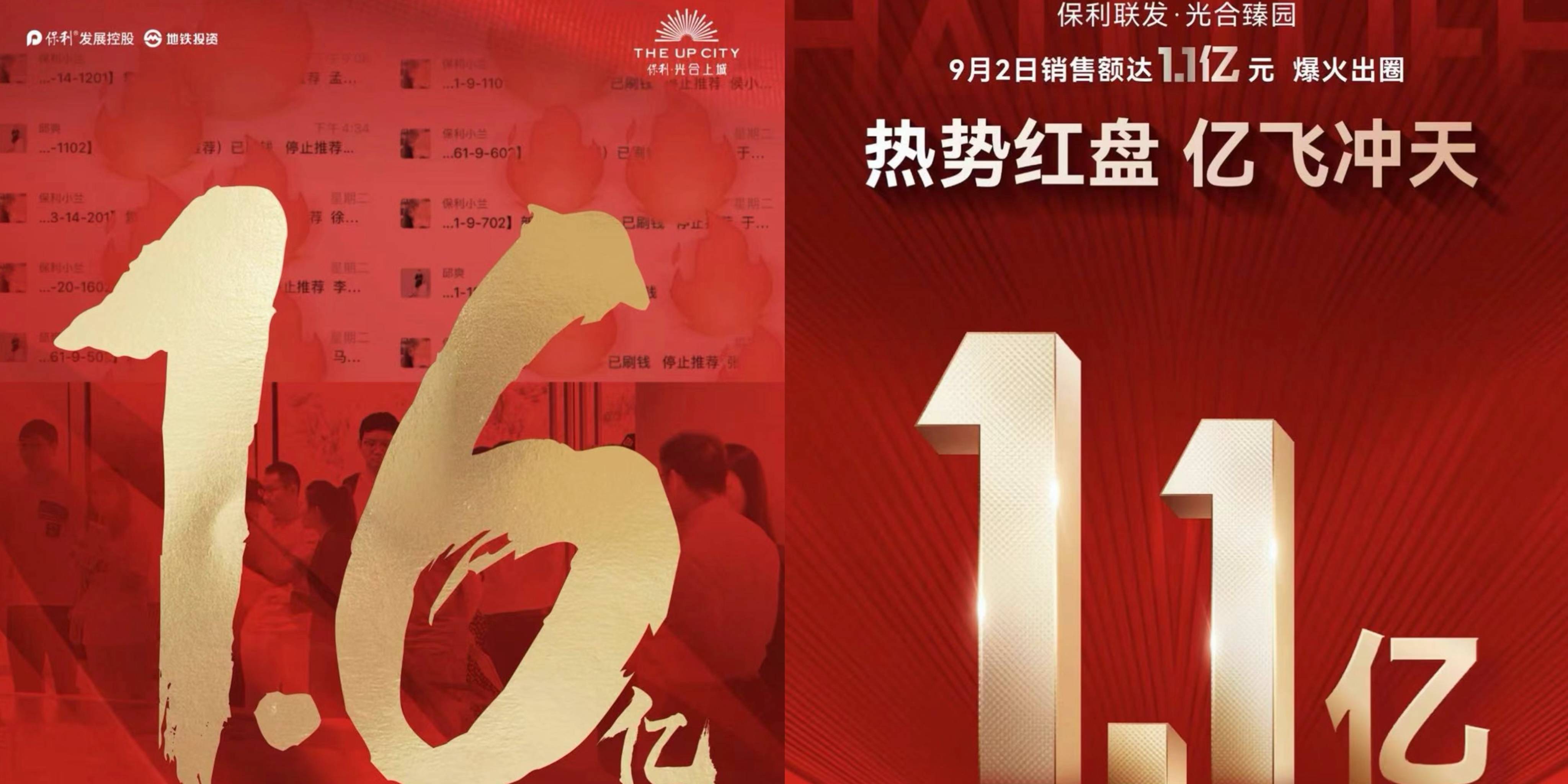 9月2日,央企保利发展在上海的两个楼盘均达到了成交额过亿,其中一个楼盘成交额达1.6亿元,另一个成交额达1.1亿元。