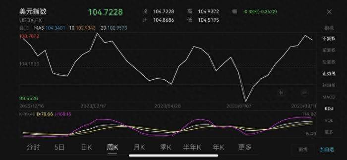 王有鑫分析称,近期美元指数回升速度较快,在美联储货币政策走势即将变化和美国经济下行压力增加背景下,未来继续大幅上升的可能性较小。