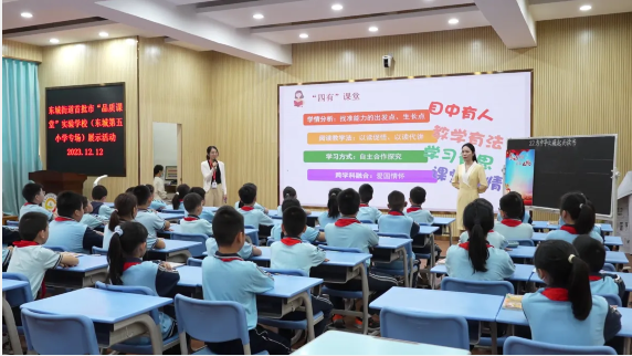 作为市首批“品质课堂”实验学校,东城第五小学以“四有”品质课堂为基础,积极构建“I+学科融合协调教学模式”的课题研究,发挥4个名师工作室的作用,通过深入课堂实践、展示交流,提升全校教师的教学水平。