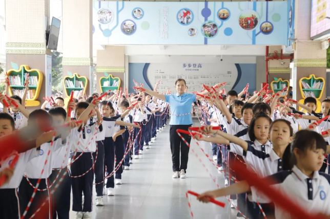 据了解,莞城步步高小学基于“崇文尚雅,步步登高”的办学理念研发的大课间,是以发展核心素养为目的,以跳绳为特色载体,以身体练习为主要手段,以“学练赛评”为实施策略,以增进学生身心健康为宗旨, 融德育、智育、体育、美育为一体的综合育人课程,同时也是莞城步步高小学多年来享誉省市乃至全国的品牌课程。