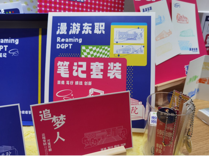 作品“漫游东职”是通过学生的视角加上创意想法,创作出的系列新生“启程包”。目前该作品已成功接到“订单”,将用在东莞职业技术学院新生入学大礼包以及校内图书馆、党建等领域。