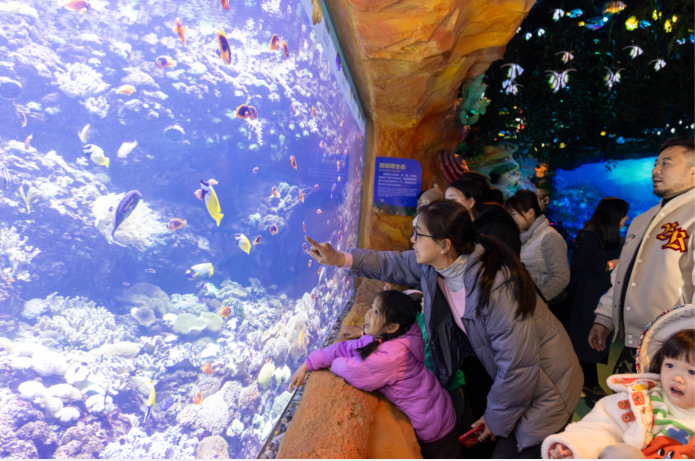 “孩子零距离接触海洋生物,去观察它们的生活习性,了解海洋生物背后的故事,还有艺术辅导老师带他们剪纸、绘画,这比刷手机看电视更直观,更有意义。”专门带孩子从北方来长隆珠海横琴度假的张女士说。