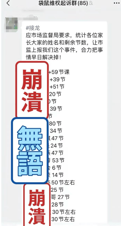 从维权群里家长们的统计来看,不少家长都是被欠了几十节的课没上。
