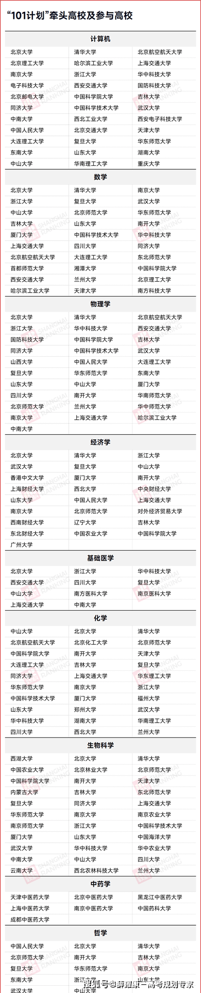 今年“101计划”取得了更大的进展,覆盖的学科范围进一步扩大。除了计算机领域外,教育部高等教育司明确提出,在数学、物理学、化学、生物科学、基础医学、中药学、经济学、哲学等基础学科相关领域,全面实施系列的“101计划”。