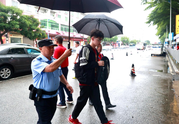 雨水高发,为做好考生服务工作,该校从学校南二门校门口至候考区、考场、午休区、宿舍,学校进行了雨棚和风雨走廊的全覆盖,并全部铺了红地毯,确保考生在校内“不湿身”“不湿脚”,开开心心高考,顺顺利利答卷。