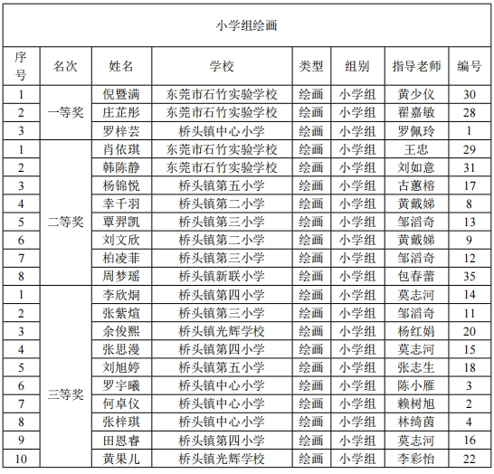6月6日,大赛邀请了东莞市美术和书法等领域的专家为大赛作品进行评选,共评出一等奖作品22件、二等奖作品57件、三等奖作品88件以及优秀组织奖、优秀指导教师奖。接下来,桥头将举行颁奖仪式,对获奖作品和获奖者进行表彰。