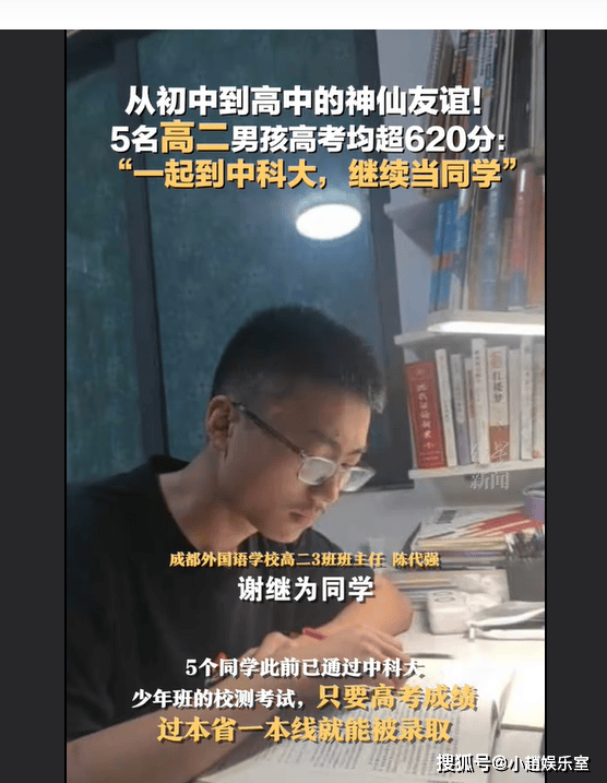 最近,教育界传来了一个振奋人心的消息:成都外国语学校5名高二男孩在今年的高考中都取得了超过620分的优异成绩。这五名学生不仅年龄比大部分考生小,且都展现出了超出常人的学术能力和成熟度。更值得关注的是,他们都选择了报名参加中国科学技术大学(中科大)的少年班项目。
