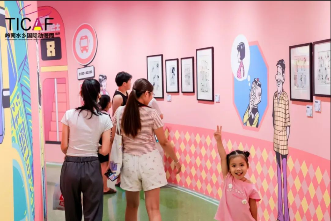 1场横跨60年、2代漫画家的多巴胺漫画展,“香江漫趣——老夫子60周年漫画展”在洪梅美术馆(百年国漫馆)拉开帷幕。两边分别陈列王家禧和王泽两代老夫子的作品。踱步走过长廊,仿佛漫步在香港的60年的漫画历史长河中。