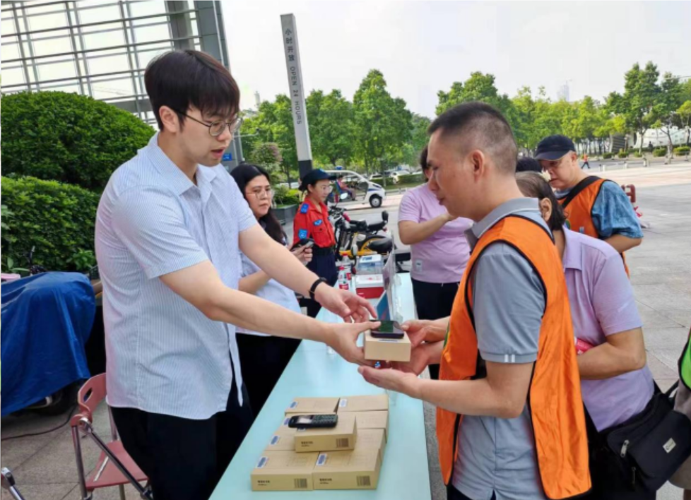 东莞图书馆在活动现场开设推广摊位,宣传读者证办理、阳光听书机借阅,并指导盲人使用手机访问馆藏数字资源和听书服务。