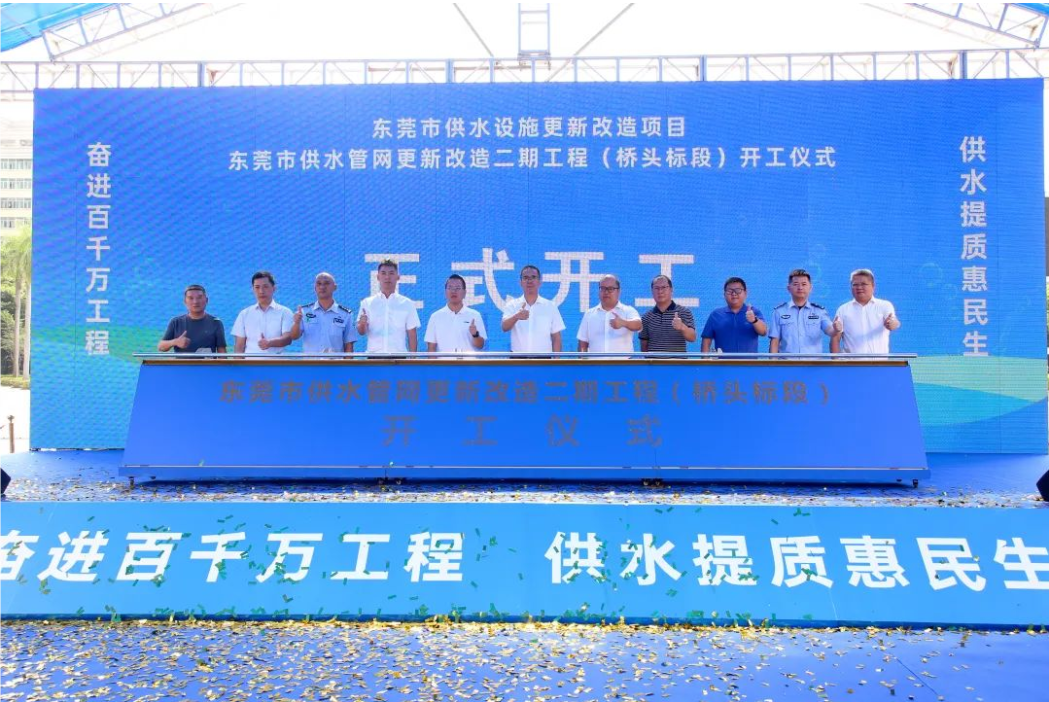 10月18日,东莞市供水设施更新改造项目——东莞市供水管网更新改造二期工程(桥头标段)在桥头广场正式开工。该项目旨在优化桥头镇的供水布局,提升供水水压,增强供水稳定性及安全性,以满足当地居民的用水需求,并助力桥头镇“百千万工程”建设。