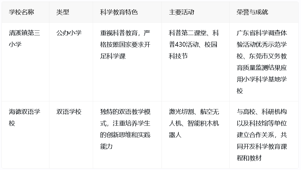 清溪镇第三小学作为一所公办小学,一直以来都非常重视科普教育工作。该校严格按照国家要求开足科学课,并积极组织学生参加各类科普活动。近年来,第三小学在科普教育方面取得了显著成绩,获得了多项荣誉。此外,该校还拥有一支由12名专职科技辅导员组成的强大团队。