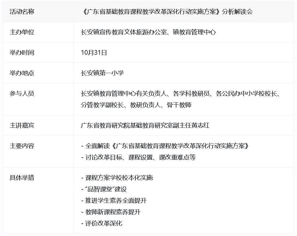 长安镇基础教育课程教学改革深化行动实施方案解读会概要