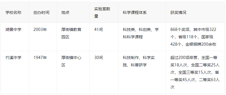 厚街镇湖景中学成功入选首批广东省中小学科学教育示范校。该校创办于2003年,位于厚街镇教育园区,是一所按省一级学校标准配置的全寄宿制初级中学。