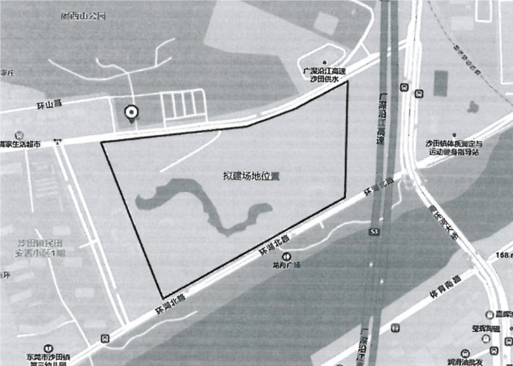 东莞市沙田中学(暂定名)位于滨港路、环湖北路、滨水区纵二路和滨水区横四路之间,总用地面积为92727.86平方米,总建筑面积146572.85平方米。学校的建设内容包括1号食堂宿舍楼、2号宿舍楼、3号体育馆、4号图书馆、5号高中教学楼、6号初中教学楼、7号报告厅、8~10号门卫、11号地下车库等单体建筑以及辅助功能建筑。最大建筑物层数为12层,最大建筑高度约49.50米。此外,学校还将同步建设室外绿化、道路、停车场、室外管线等室外配套设施。