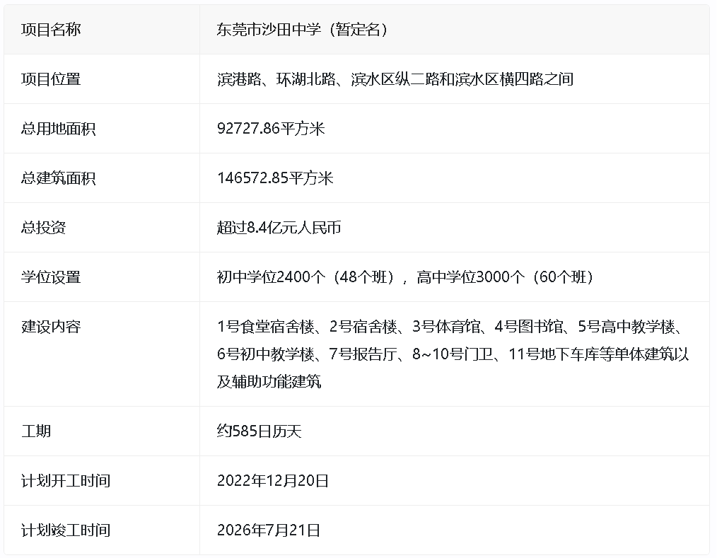 东莞市沙田中学(暂定名)的建设是当地政府积极回应社会关切、加大教育投入的重要体现。公众对这一项目的期待已久,相信它的建成将进一步提升东莞的教育水平,为学生创造更加优越的学习环境。