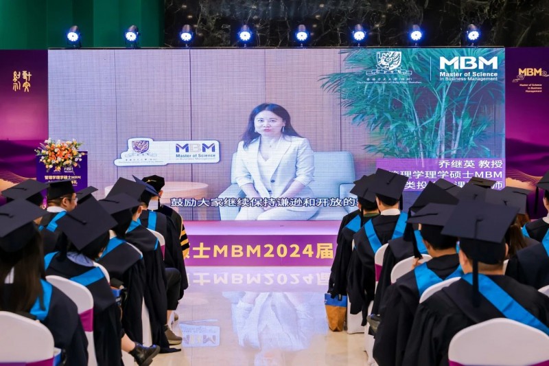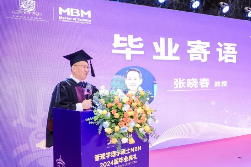 下午两点整,香港中文大学(深圳)管理学理学硕士MBM2024届毕业典礼正式开始。本次毕业典礼由香港中文大学(深圳)管理学理学硕士MBM项目执行主任王钰老师主持。出席毕业典礼的教授和嘉宾有:深圳市智慧城市科技发展集团有限公司党委书记、董事长,全国工程勘察设计大师、教授级高级工程师张晓春教授,香港中文大学(深圳)协理副校长、管理学理学硕士MBM课程主任王丛教授,香港中文大学(深圳)管理学理学硕士MBM《组织行为》课程讲师黄炽森教授,香港中文大学(深圳)经管学院副院长、校长讲座教授艾春荣教授,香港中文大学(深圳)管理学理学硕士MBM业界导师梅海英老师、孙洪涛老师,香港中文大学(深圳)管理学理学硕士MBM2022届毕业生乔莹校友。