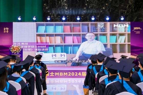 MBM课程主任王丛教授向2024届毕业生颁发学位证书,并为他们佩戴代表荣耀的绶带。这一仪式,不仅是对毕业生们在校期间不懈努力与辛勤付出的肯定,也标志着他们即将踏上职业生涯新征程。在场所有师生共同见证了这一兼具庄重与温馨的场景,并向这些即将瀚海翱翔的毕业生致以最诚挚的祝贺。相信这些满怀激情与憧憬的毕业生们,在未来的道路上定能乘风破浪,开创属于自己的辉煌篇章,书写更加灿烂的明天。