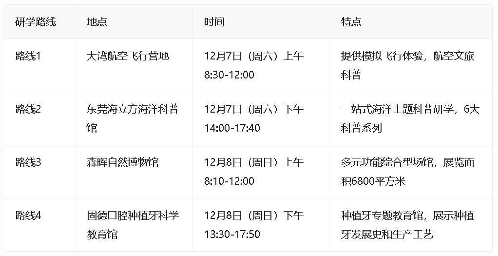 本周末(12月7日、8日),南城街道将再次启动科普研学游活动,为亲子家庭提供一场别开生面的知识探寻之旅。本次活动共推出4条科普研学线路,每条线路限招募20组亲子家庭(仅一大一小,小朋友年龄为7-12岁),每场活动共计40人。即日起至12月5日晚上12点,感兴趣的家长可以通过扫描文末二维码进行报名。