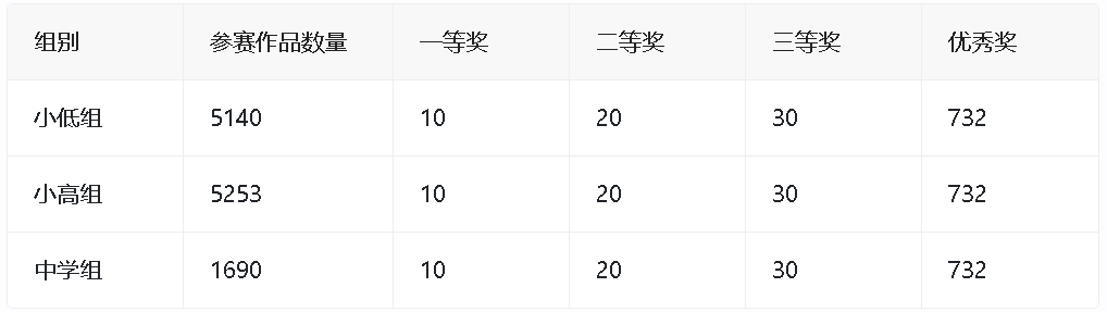 自8月5日发布征稿启事以来,大赛在不到两个月的时间里共收到全省各地市七百多所学校和机构的投稿作品12083件,其中小低组5140件,小高组5253件,中学组1690件。作品涵盖了篆隶楷行草五种书体,质量普遍较高。经过初评、复评共一千余件作品进入到终评环节,最终在省硬笔书协组织专家的评审中共评出各组别一等奖10名、二等奖20名、三等奖30名;优秀奖共732名。