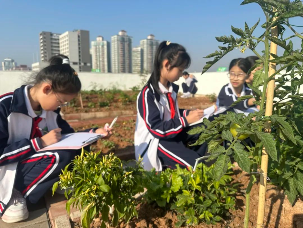 在冬日的暖阳下,东莞市莞城和阳小学校园内,一项独特的文化实践活动——“识本草,乐传承——趣探中草药”美术课程,如同一股清新的风,吹进了五六年级学生们的心田,引领他们踏上了一场充满创意与探索的中草药文化之旅。和阳小学内有一处令人向往的秘境——中草药种植基地。这里不仅种植着萝卜、番茄、花生、黄豆等家常蔬果,还培育着金银花、藿香、佩兰、车前草等中草药,共同编织出一幅自然多样性的绚丽画卷。课程的第一阶段,同学们怀揣着对自然的好奇与敬畏,踏入了这片生机勃勃的中草药天地。在美术老师的指导下,他们通过仔细观察中草药的生长环境和形态特性,用手中的画笔在纸上自由跳跃,将一株株中草药的神韵巧妙地定格在了画纸上。