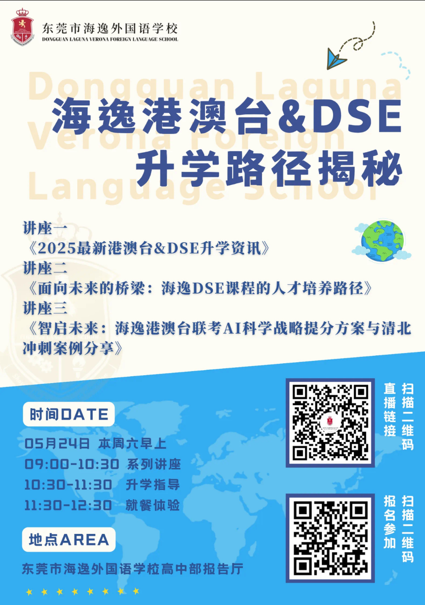 近日,东莞市海逸外国语学校正式公布2025年港澳台学生专项招生计划。这所由伊顿国际教育集团斥资打造的12年一贯制国际化学校,凭借粤港澳大湾区核心区位优势,为港澳台学子量身打造"联考+DSE"双轨升学通道,目前已培养超200名港澳台在读生。