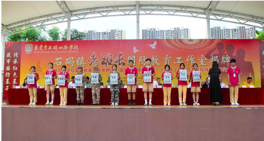 5月22日,石碣四海学校迎来特殊教育力量——19名退役军人佩戴鲜红绶带,从市领导手中接过国防教育指导员聘书,标志着全市首个"老班长国防教育工作室"正式启动。这些曾守卫国土的战士将用军营故事点燃青少年爱国情怀,打造沉浸式国防教育新阵地。