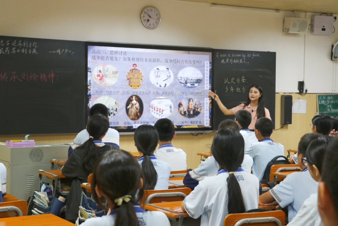 虎门第五中学以“以史为鉴,少年担当”为主题,设计了分篇章教育活动,包括“震撼世界的虎门销烟”“鸦片战争-落后与觉醒的转折点”以及“林则徐精神的现代密码”。通过多媒体展示和互动研讨,学校引导学生在历史中寻找精神坐标,将林则徐的爱国情怀转化为当代担当。活动强调,虎门销烟不仅是历史事件,更是民族觉醒的象征,激励青少年在新时代中勇担使命。