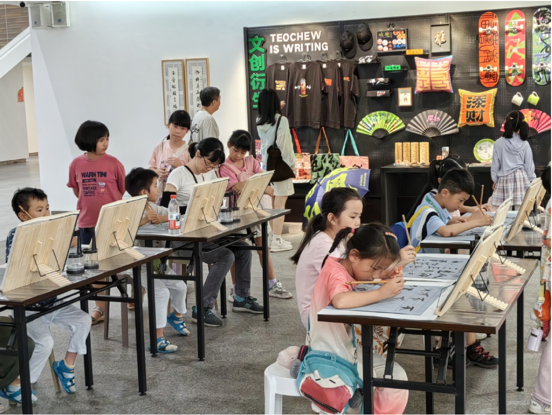 踏入莞城美术馆展厅,潮州老厝的朱漆大门徐徐开启,门楣电子屏上"平安吉祥"的潮州方言祝福语正轮番闪现。6月8日开幕的"书写中的潮州"特展现场,113件(套)带着烟火气的展品铺陈开来——泛黄的侨批信封上,"儿寄港币伍拾元"的墨迹洇染着海外游子的牵挂;百年茶庄的锡罐贴着"凤凰单丛"的工楷标签;甚至水果摊悬挂的"大粒雅"招牌,粗粝的牛皮纸透出市井书写的生命力。展览策展人陈默掀开展柜暗格,取出一盏复刻的潮州竹丝灯笼:"这些灯笼铺学徒的习字纸,比书法名家的作品更能见证文字传承的温度。"