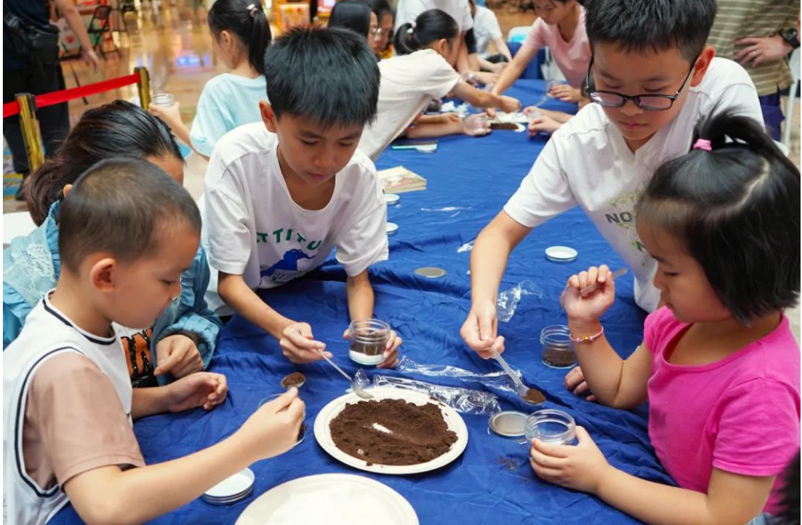 这股绿色风潮最终席卷虎门君乐汇商场。六月末的周末,六十多组亲子家庭挤在操作台前,空气中弥漫着咖啡渣的醇香。七岁的林小雨把椰子油和咖啡渣搅拌成糊状,小心翼翼装进玻璃罐:"妈妈说这是天然磨砂膏!"隔壁披萨制作区,家长带着孩子精准称量面粉,宣讲员用果皮菜叶演示"三明治堆肥法"——厨余垃圾夹在枯叶层间,两周后就能化作养花沃土。"原来草莓蒂比塑料袋分解快一百倍!"年轻母亲张女士记录着堆肥比例,打算在阳台开辟"生态农场"。