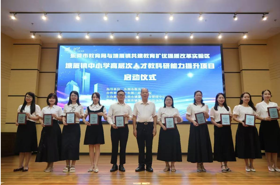 七月骄阳映照着塘厦第二初级中学的学术报告厅,60张特制工作站牌匾在主席台前闪着金属光泽。7月12日这场中小学高层次人才教科研能力提升项目启动仪式上,初中语文教师刘业生从镇领导手中接过"领军人才工作站"铭牌时,掌心微微沁汗:"这块牌子承载着草木生长的耐心,更呼唤着众行致远的担当。"作为东莞临深片区教育改革的先行者,塘厦镇正式启动教师队伍"强师兴教"五年计划,未来三年将投入专项资金培育10名领军、20名领航、30名领创型教师。