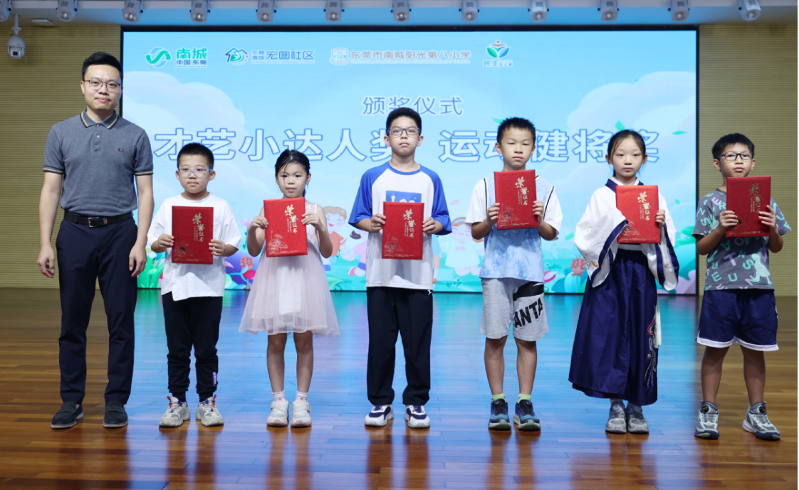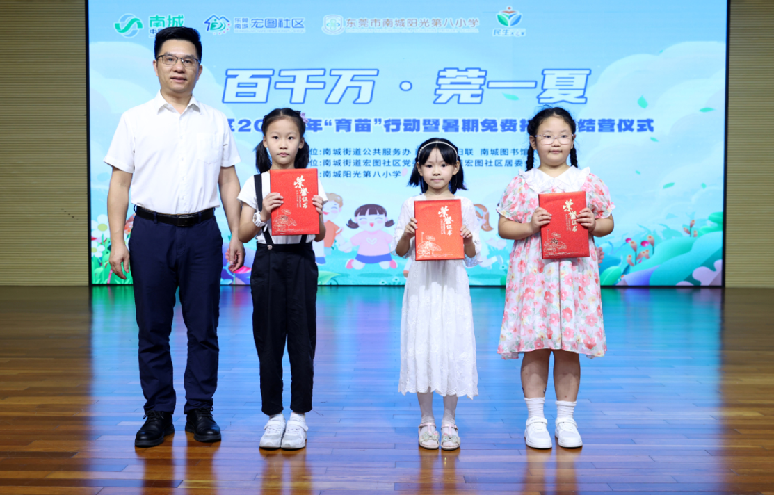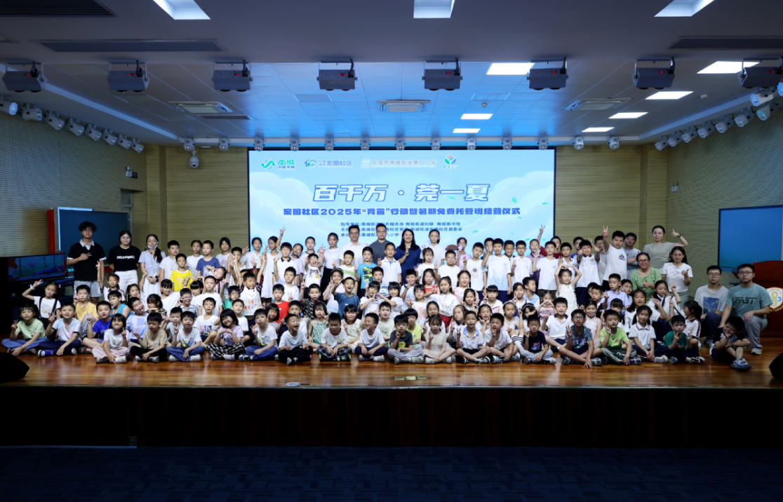 2025年8月22日下午,宏图社区2025年“育苗”行动暑期免费托管班在南城阳光第八小学礼堂举行了隆重的结营仪式。社区党委代表、学校领导、教师志愿者、家长及学生百余人共同见证了孩子们一个多月来的成长与蜕变,为这场历时一个多月的公益托管服务画上了圆满的句号。