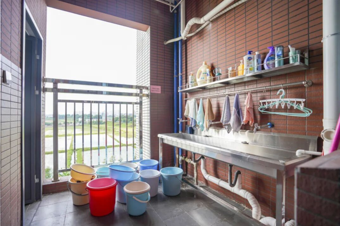 新宿舍楼2至8层为学生宿舍区域,共有161间宿舍和1610个床位,有效缓解了学校长期以来学生住宿紧张的问题。每间宿舍内部设施齐全,除了基本床位外,还配备了空调、风扇、热水、独立储物柜以及两个洗手间和冲凉房,极大地方便了学生的日常生活。宿舍内的盥洗设施也有效避免了早晚高峰时段的排队等候现象。