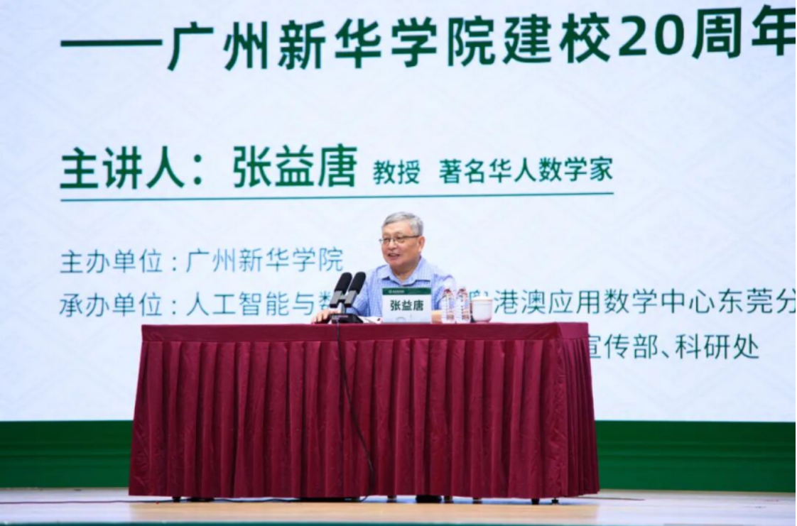 2025年9月15日,世界著名华人数学家、中山大学香港高等研究院首席科学家张益唐教授应邀出席广州新华学院开学典礼,并为全体新生带来了一场题为“我的归途,恰逢你们的出发”的专题讲座。适逢学校建校20周年,本次讲座作为校庆系列学术活动的首讲,受到师生热烈欢迎。
