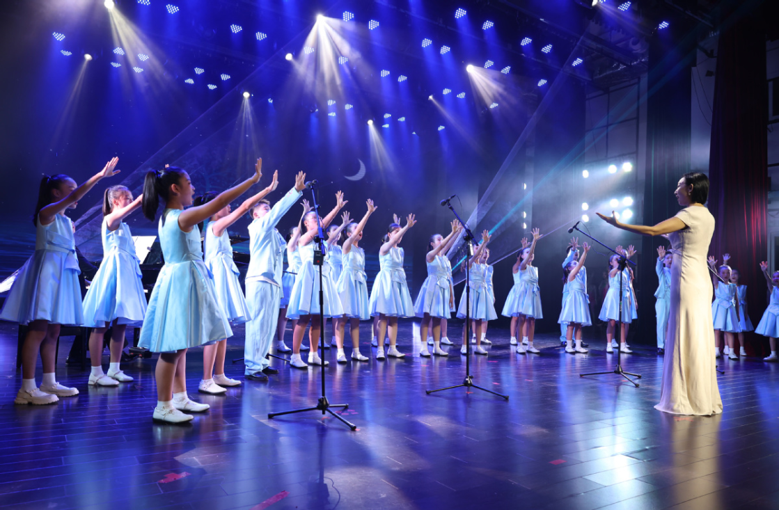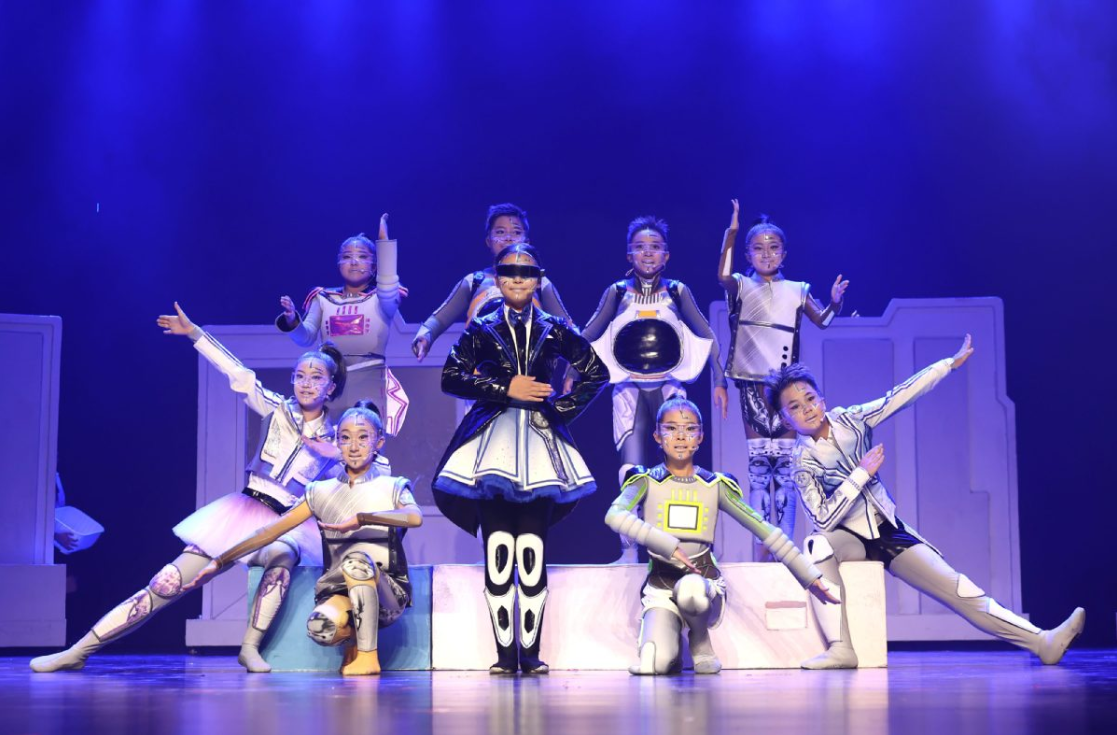 文艺汇演中,每个节目都展现了中心学生的才华和活力。青少年交响乐团演奏的《纳布科序曲》气势磅礴,拉开了演出的序幕。该乐团曾获得广东省中小学生艺术展演一等奖。原创舞蹈《禾雀花儿》通过灵动舞姿展现了团结向上的精神,赢得了广东省少儿艺术花会金奖。表演唱《小小莞香花》以三声部童声传递了岭南韵味,荣获中国音乐小金钟全国优秀原创作品展演第一名。原创音乐剧《我・AI・你》从未来科技视角探讨了人与机器的关系,获得了广东省少儿花会一等奖。压轴节目《鼓舞湾区》融合了中国大鼓、醒狮和现代舞蹈,充分展现了大湾区青少年的蓬勃朝气,赢得了全场观众的喝彩。