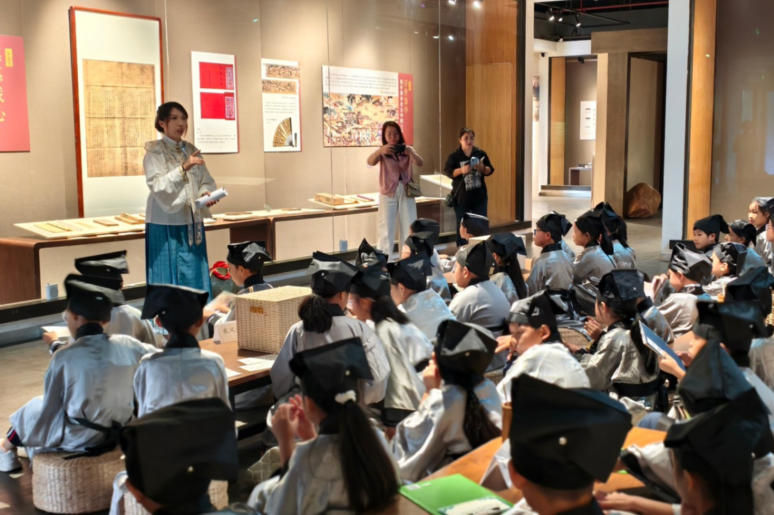 活动期间,主办方为2025年东莞市集团化办学“十佳案例”获得单位颁发证书,表彰其在办学模式创新、育人实效提升等方面的突出表现。随后举行的沙龙接力仪式,象征着东莞集团化办学经验的持续传承与迭代升级,也标志着教联体建设进入深化拓展的新阶段。在活动尾声,莞城建设小学、莞城运河小学与洪梅镇第二小学三校师生联袂呈现“力行探知”立体课堂与“青衿雅集”学生才艺展演,四节馆校融合课例——《馆中观史》《画说可园》《廊下听诗》《探秘可园》在可园博物馆实景开展,将地方文化资源深度融入学科教学,展现出文化传承与课程创新的高度融合。器乐演奏、戏剧表演、舞蹈展示以及香道茶道等传统文化体验,进一步展现了学生综合素养的多元发展,赢得现场嘉宾的一致好评。