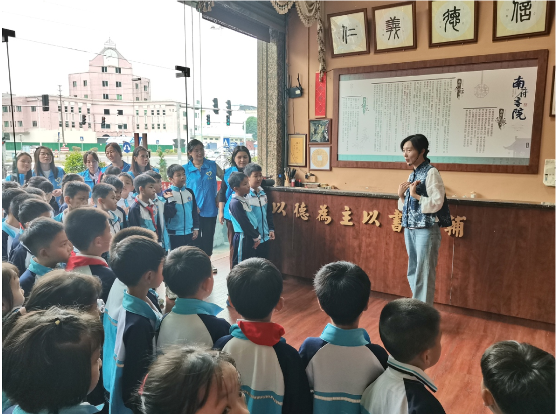 活动中,学生从“旁观者”变身“主角”。在南府书院,一年级孩子化身“小小宣讲员”,讲解书院布局与儒家文化;专业老师从甲骨文到楷书,引导他们执笔感受汉字生命力。“孩子回家后天天练字,说‘毛笔字里有故事’”,一位家长欣喜道。污水处理厂参观中,学生沿粗格栅、生化池到紫外线消毒车间,见证污水变清流的全过程。提前查阅资料的“小小宣讲员”现场分享节水知识,让环保理念从课本走入现实。班主任罗绮晴感叹:“真实场景让知识可触可感,学生参与度极高。”