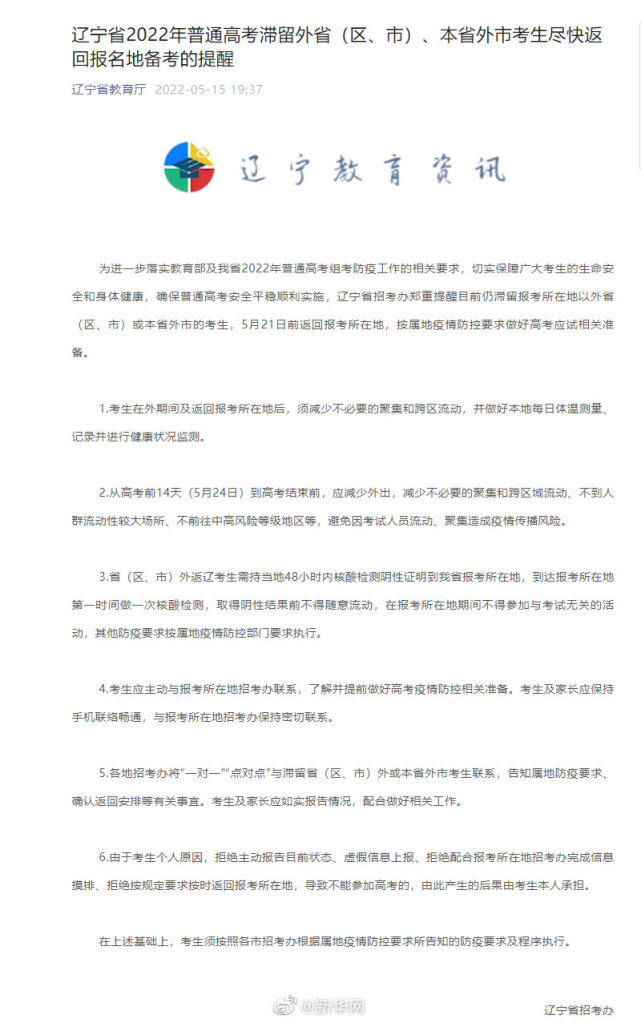 距离2022年高考不到一个月,5月15日,又有多地喊话滞留考生:尽快返回报名地备考!
